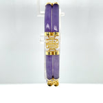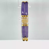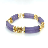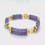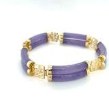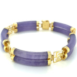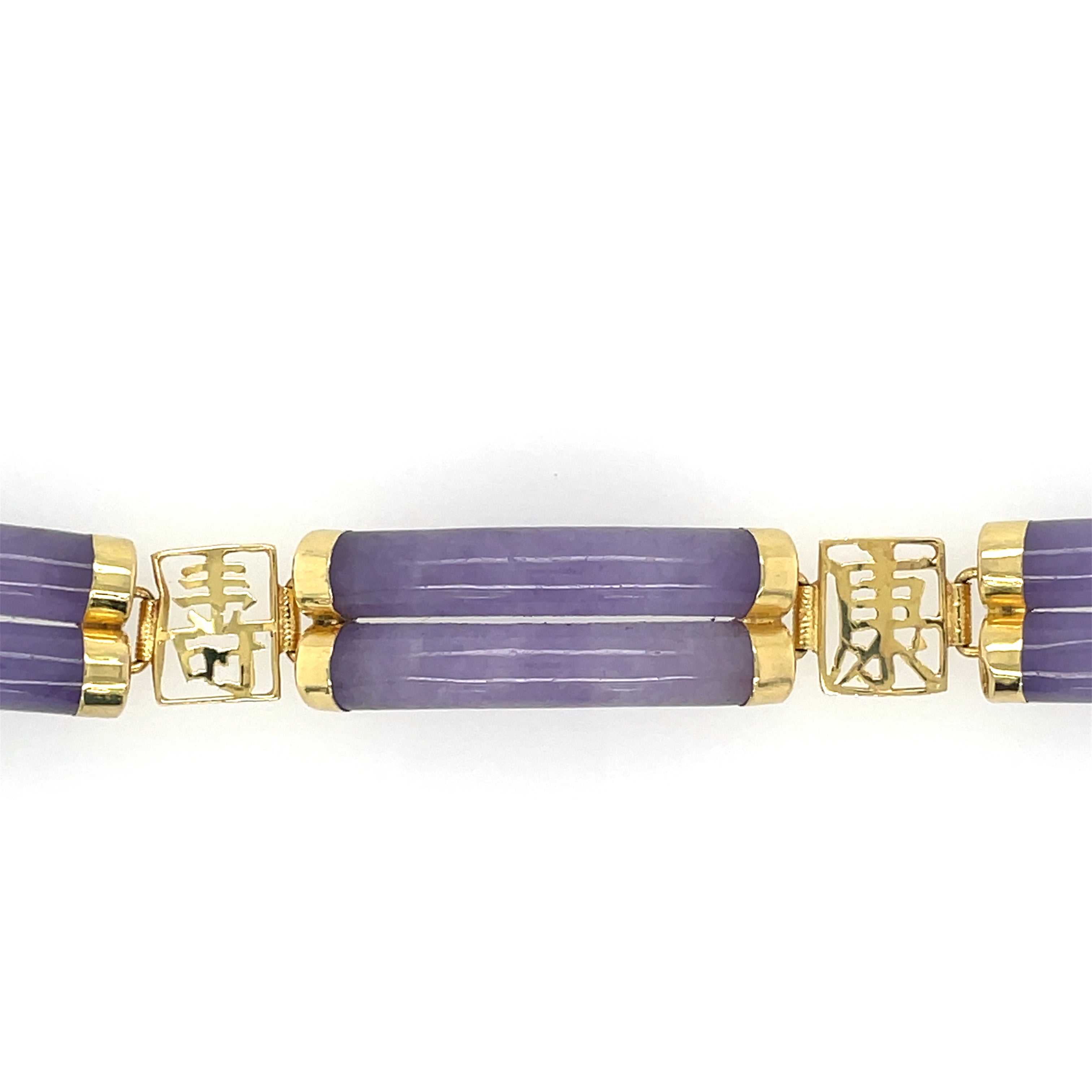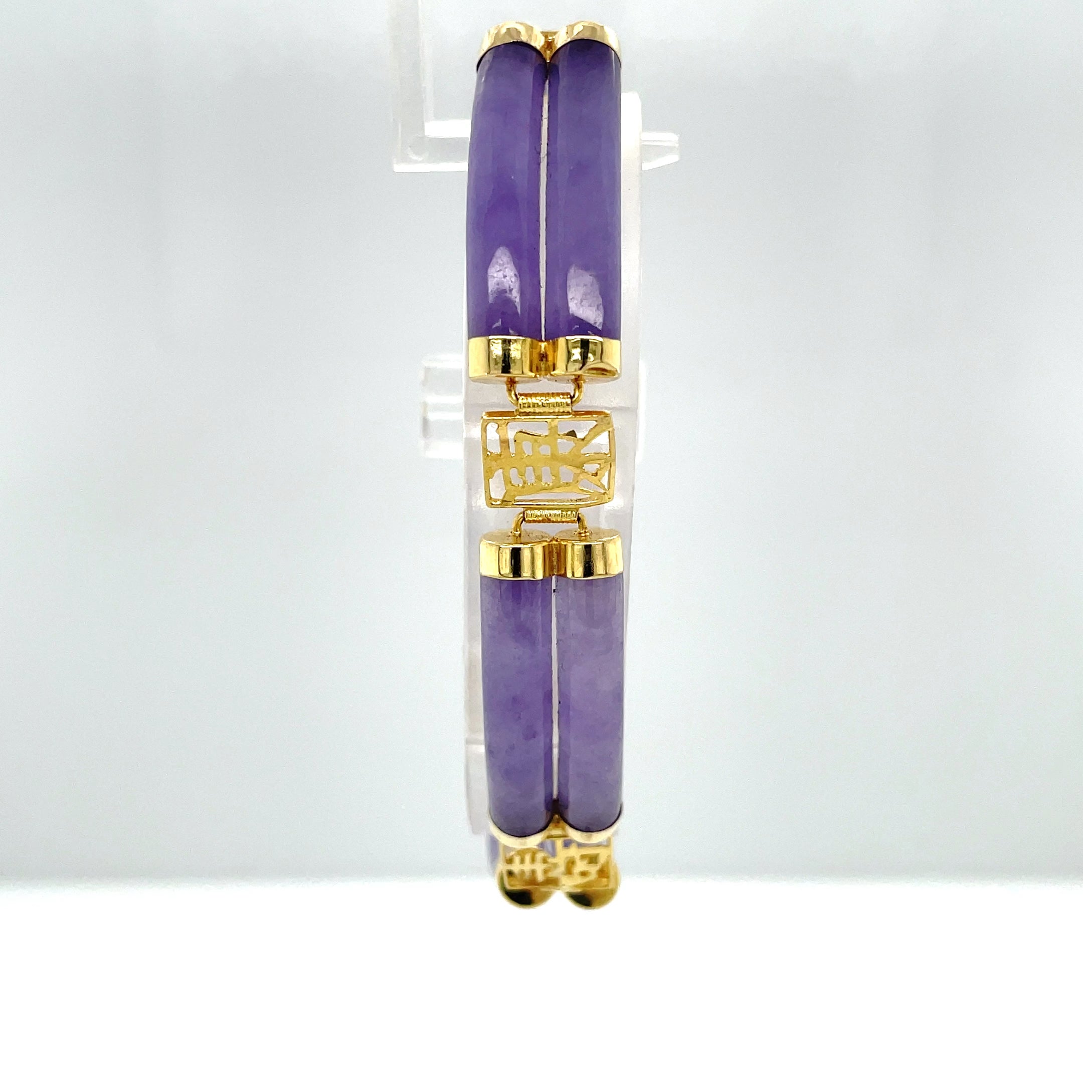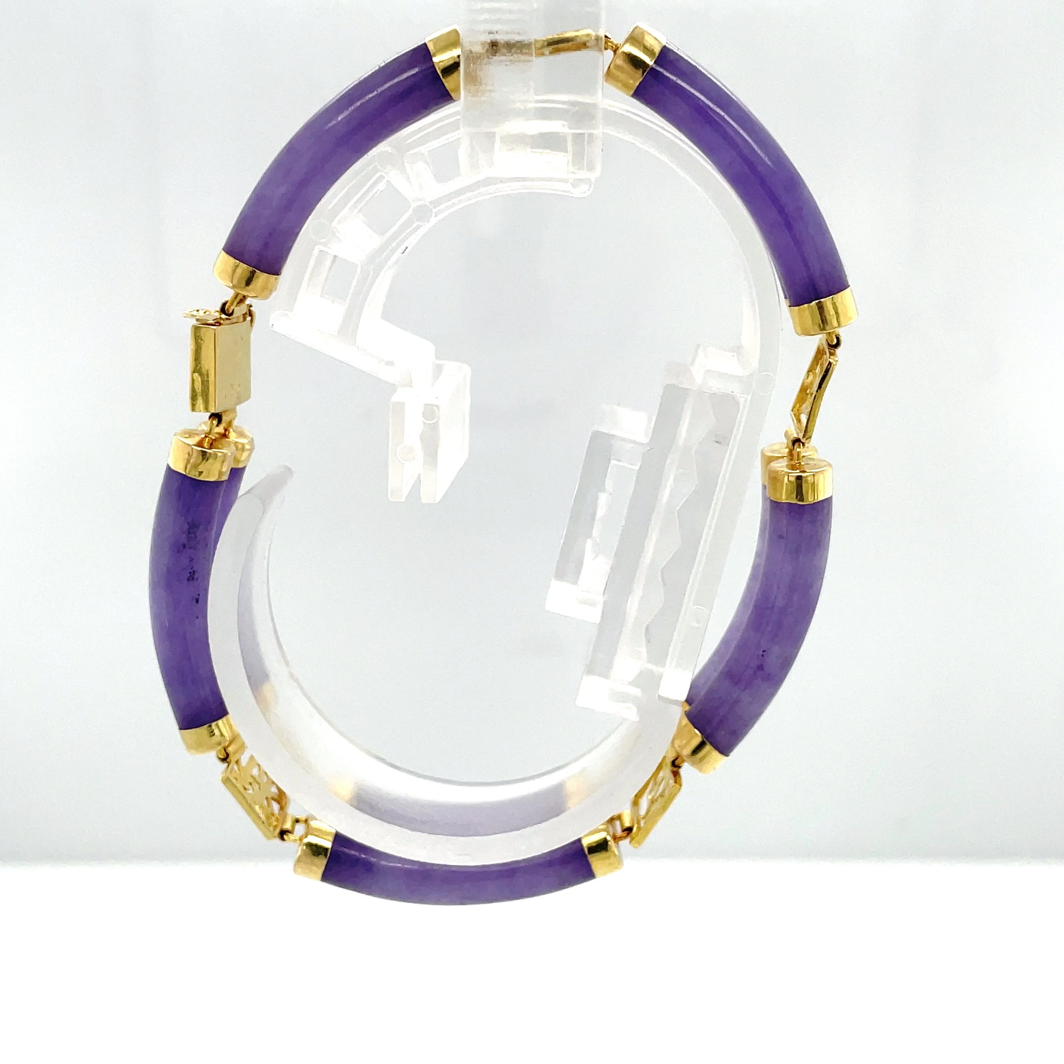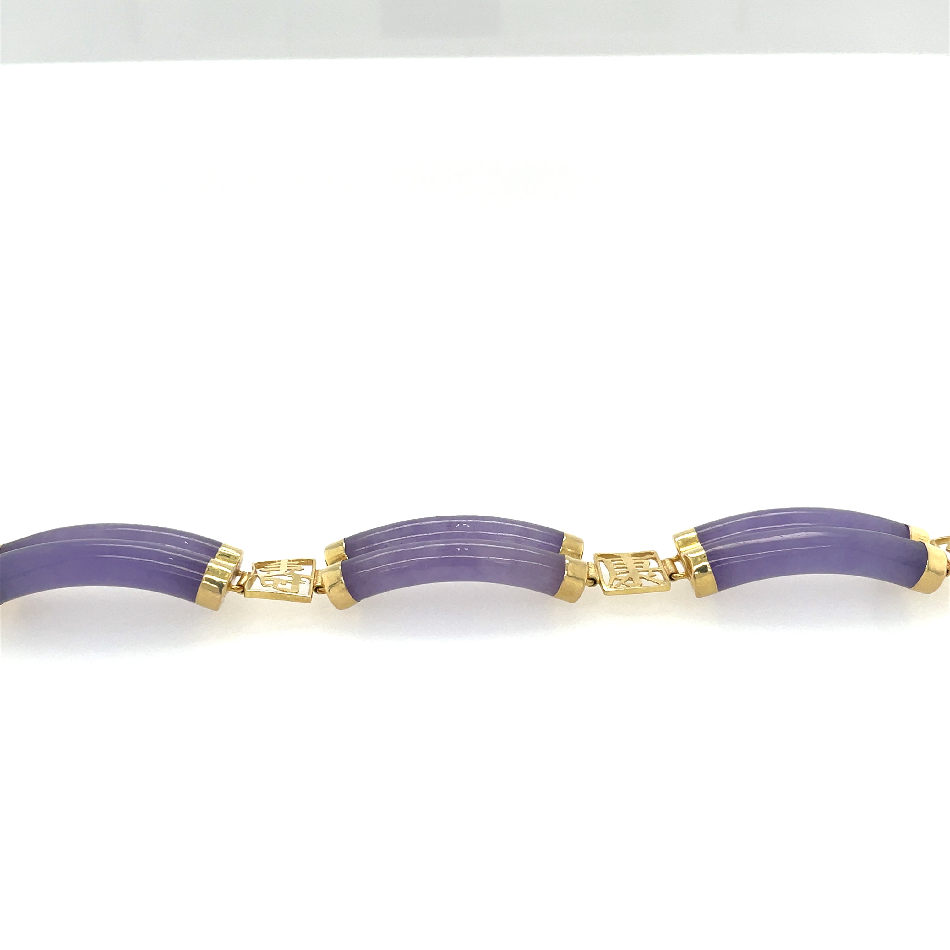 This beautiful bracelet is crafted from 14k yellow gold and features a stunning lavender jade design. The chain style adds a touch of elegance to this piece, making it perfect for any occasion. The bracelet is made with high-quality materials and is sure to last for years to come.