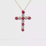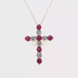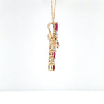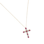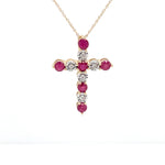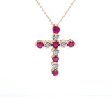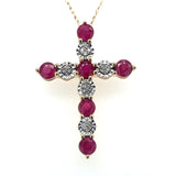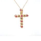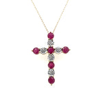 14K Yellow Gold Ruby & Diamonds Cross Necklace
