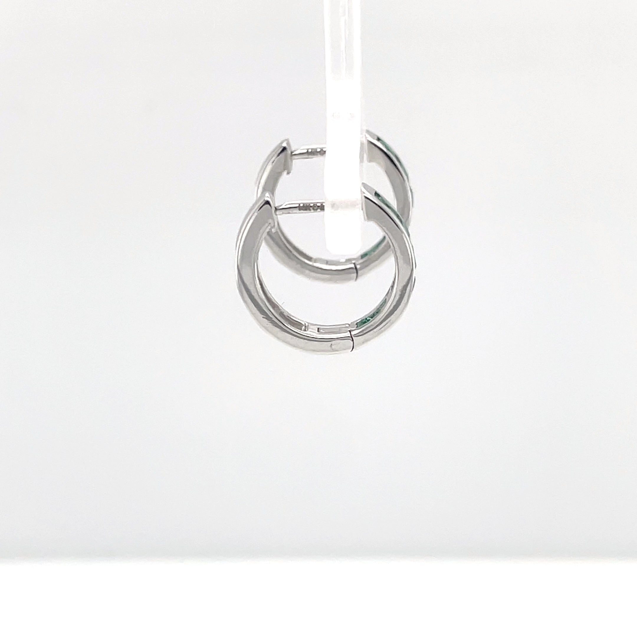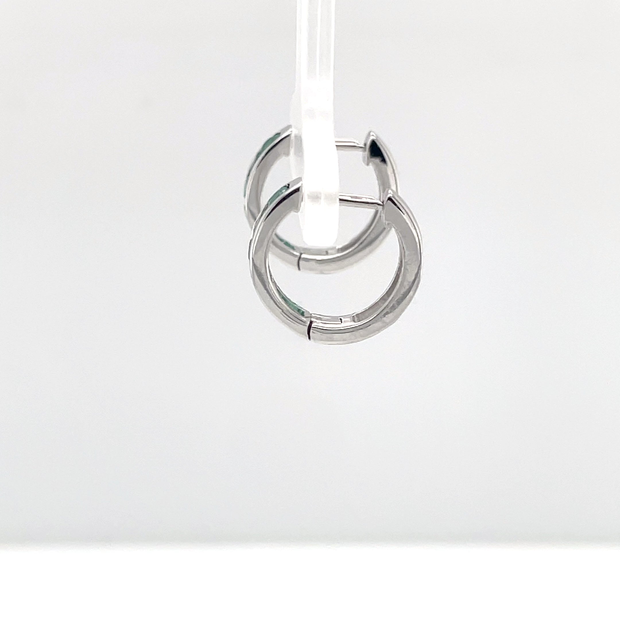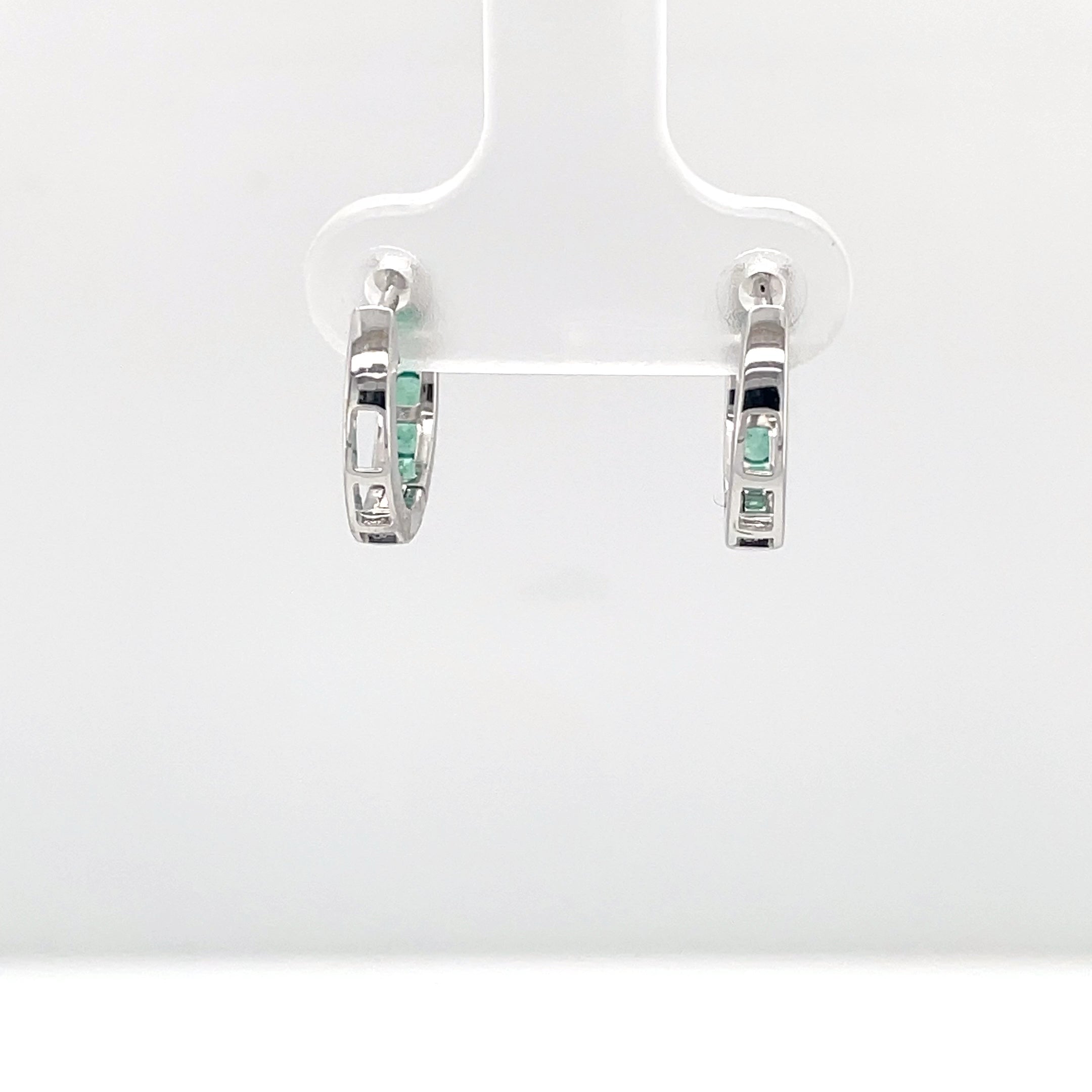 These 14K white gold huggie earrings are a perfect addition to any jewelry collection. The earrings feature a natural green emerald stone that adds a touch of elegance to any outfit. The round shape of the emerald stone and the white gold metal provide a classic and timeless look that will never go out of style.
