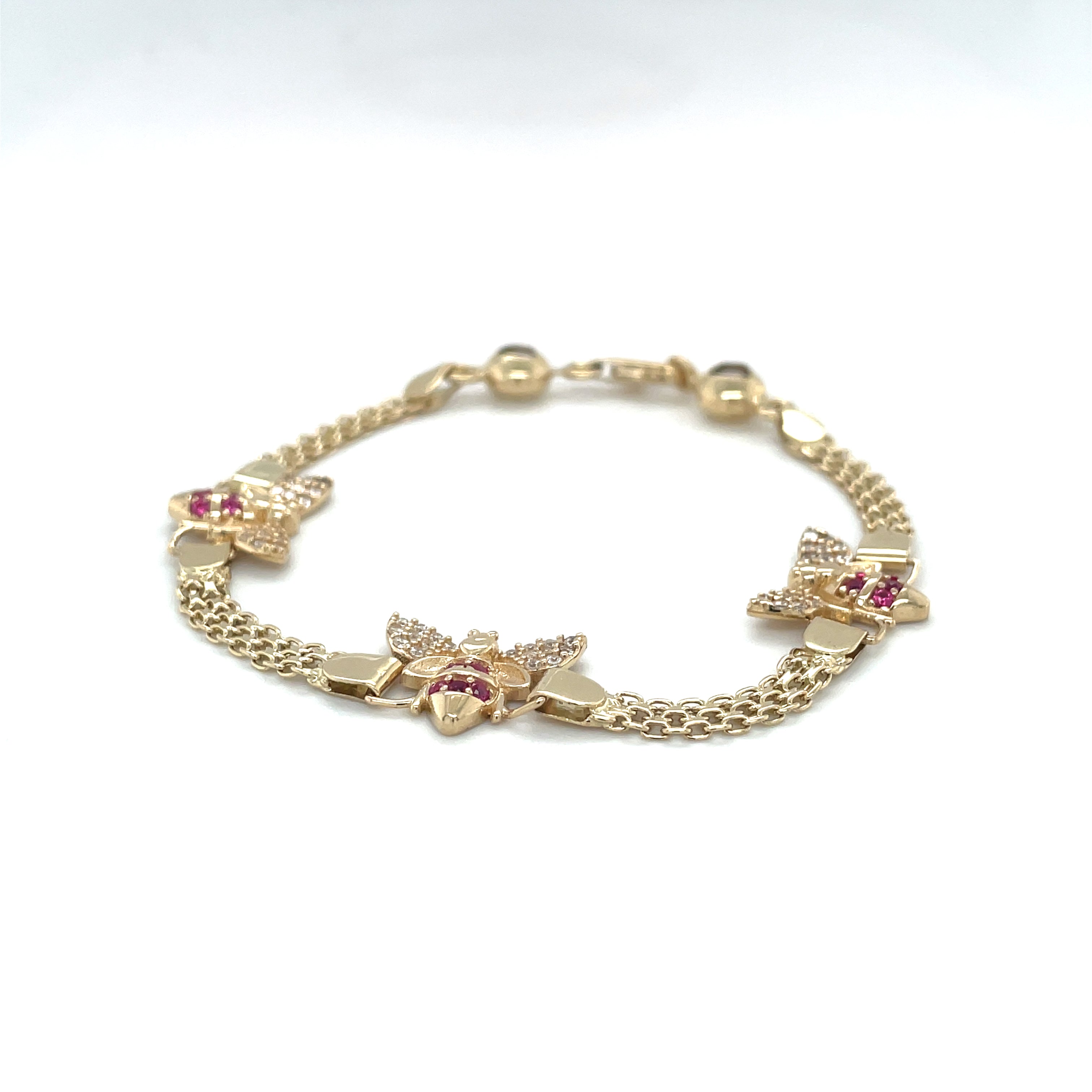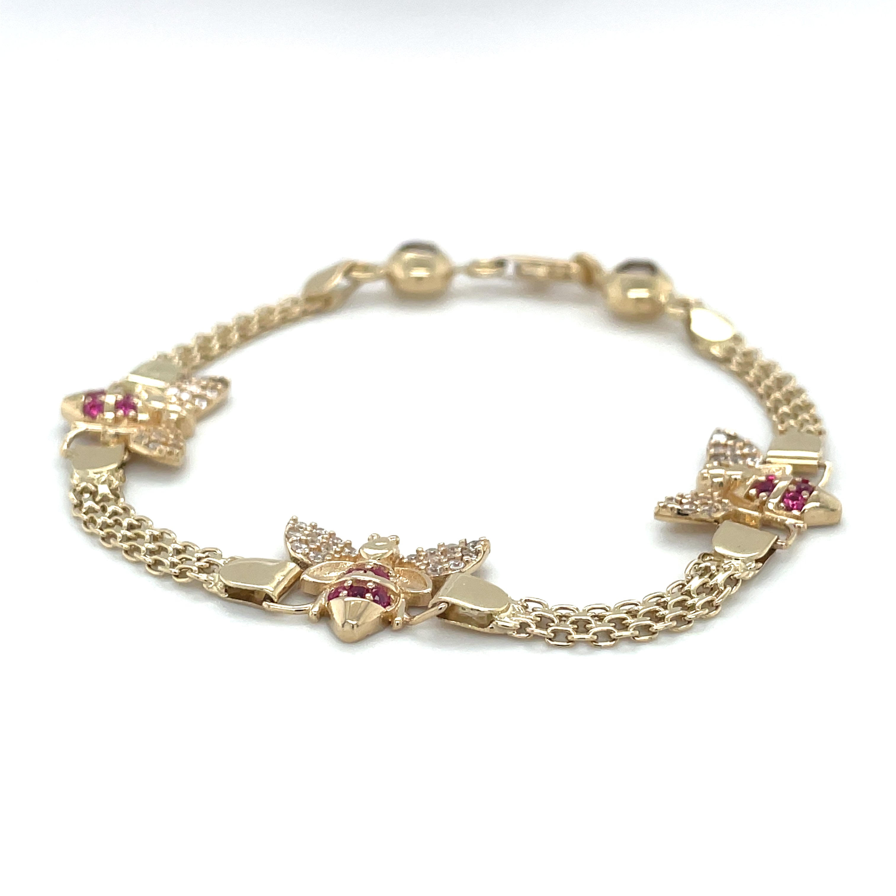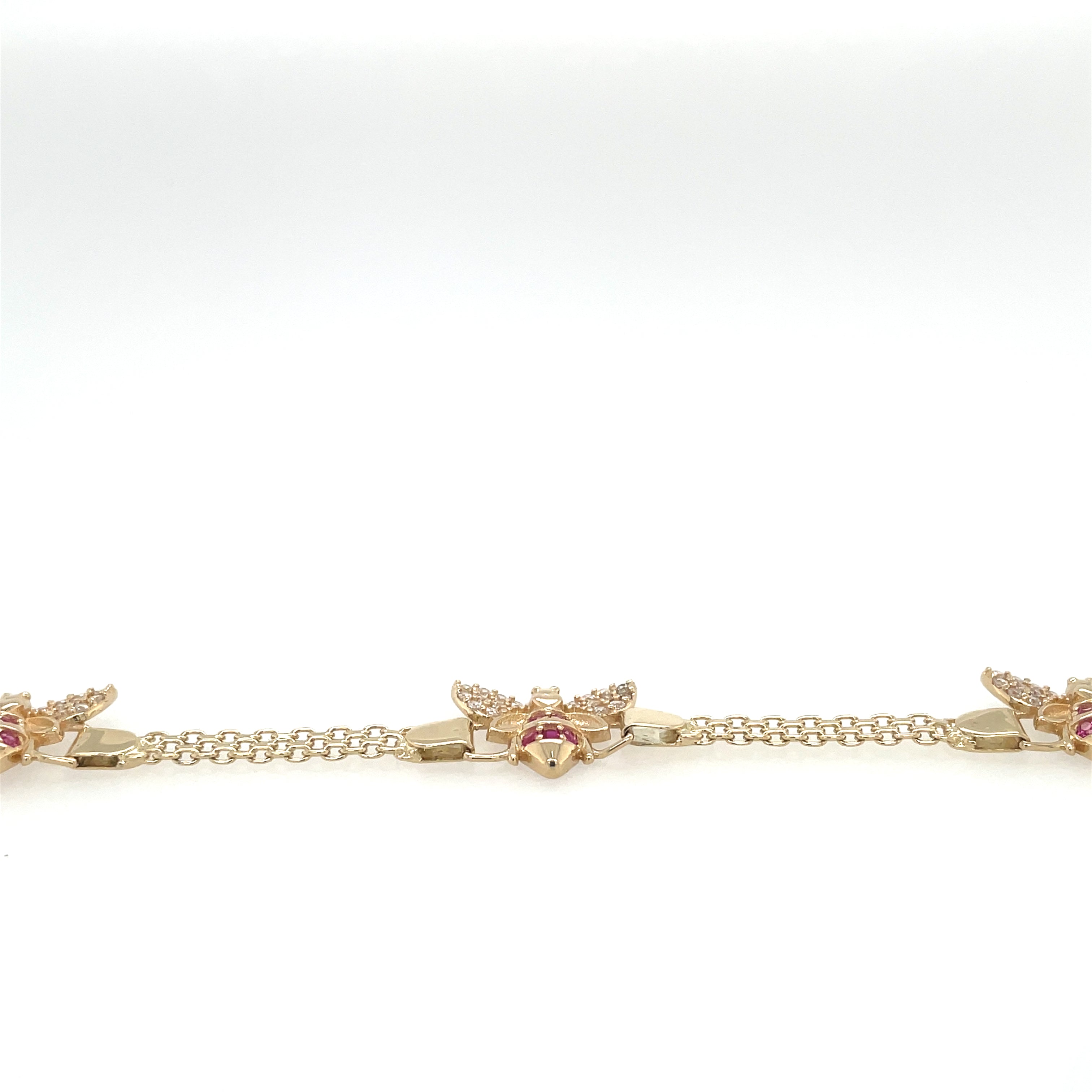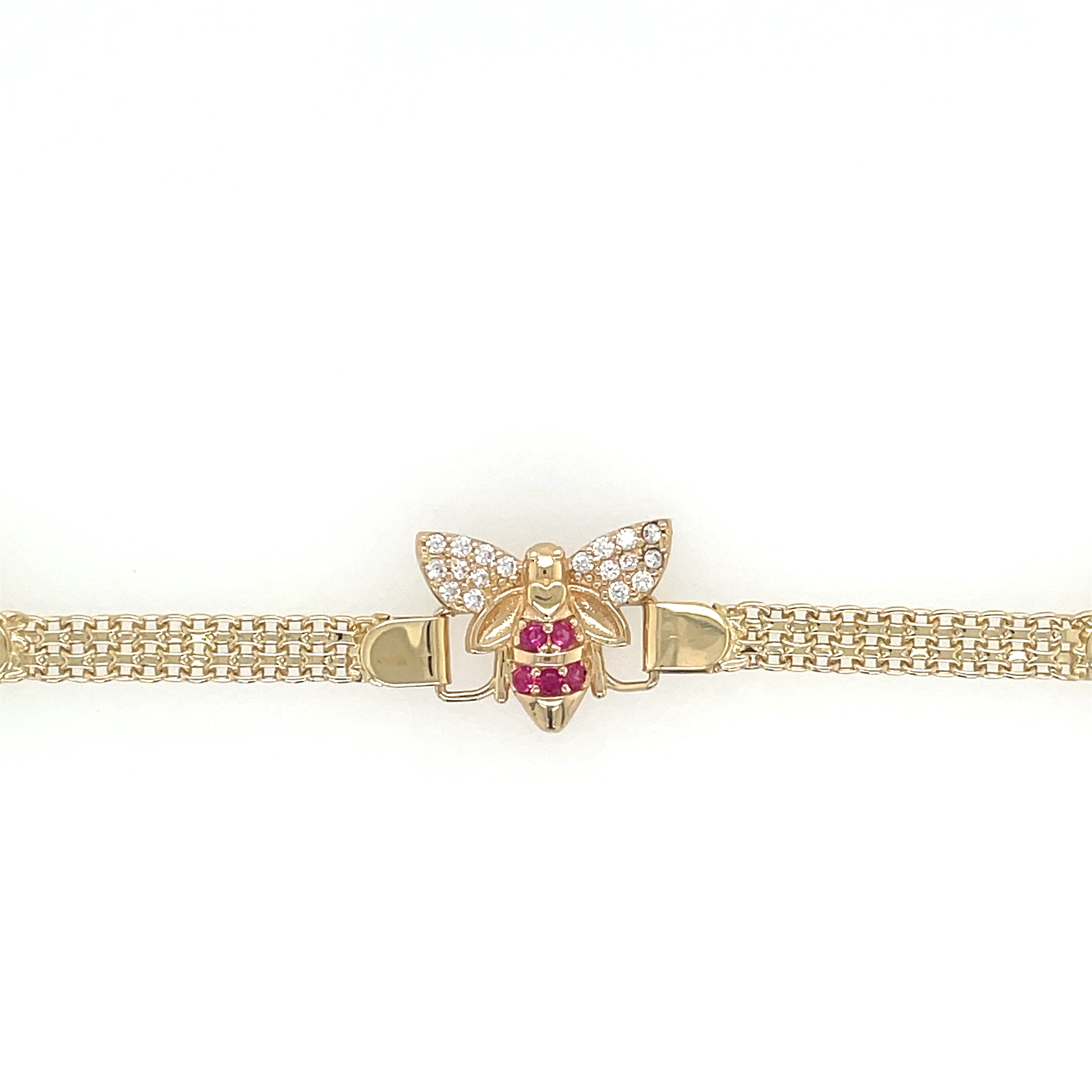 This stunning 14K yellow gold bracelet features a charming bee design, perfect for those who love animals and insects. The bracelet is crafted with a lobster closure and bismark link style, making it both elegant and functional.
