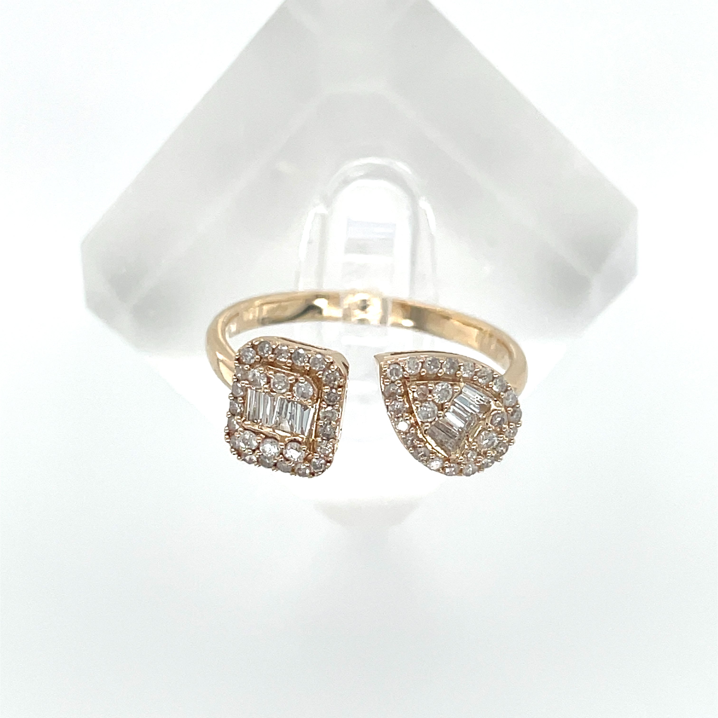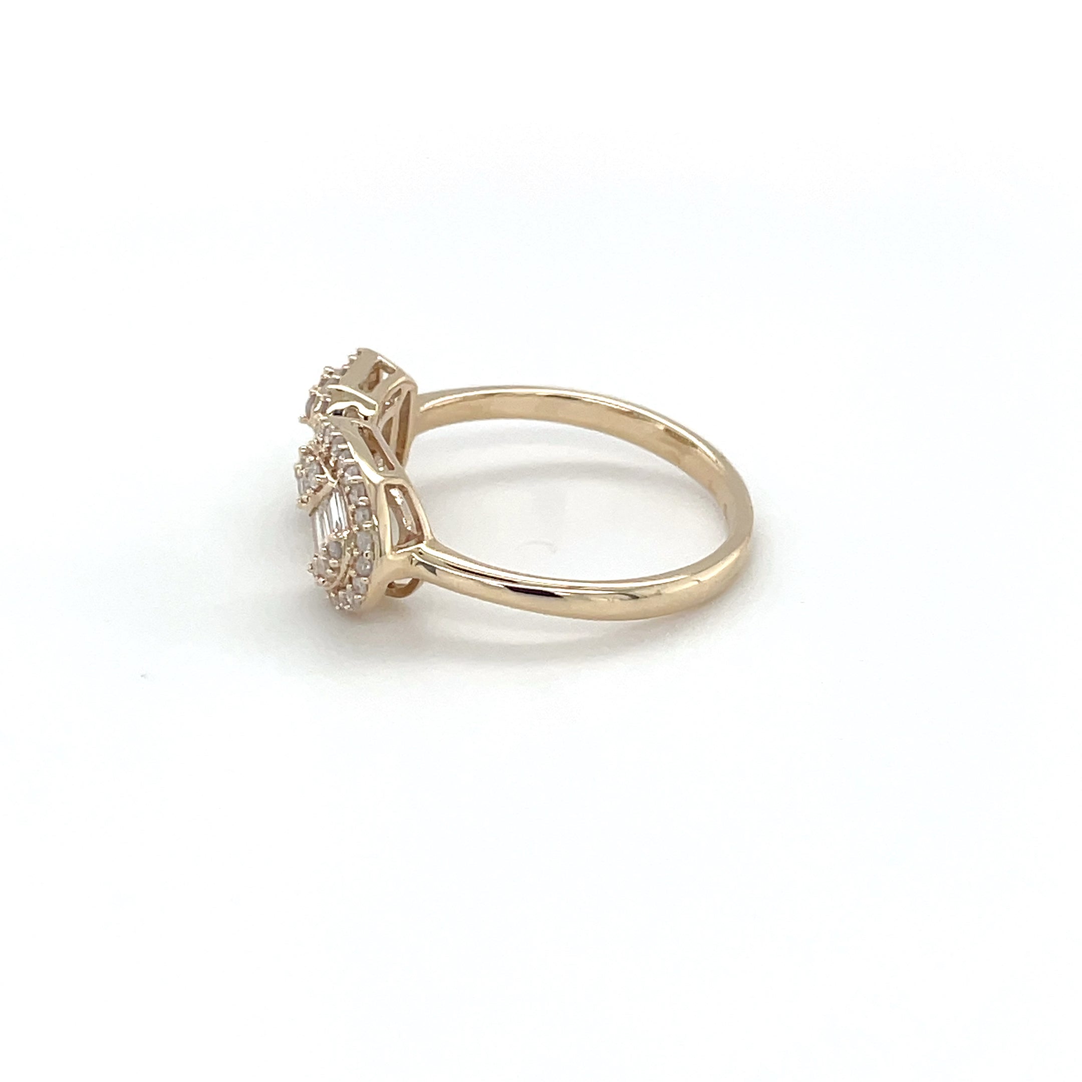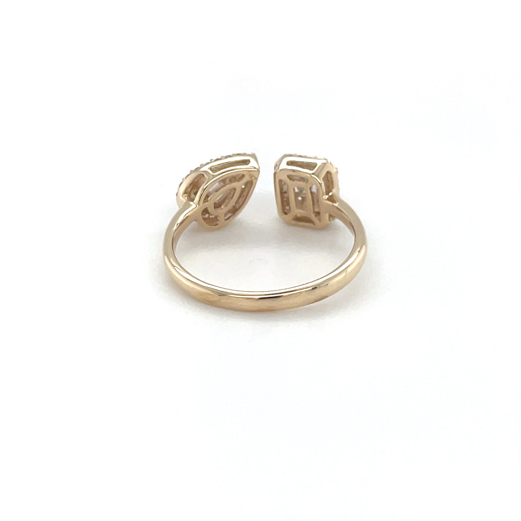 14K Yellow Gold Diamond Baguette Pear & Emerald Cut Shape Ring