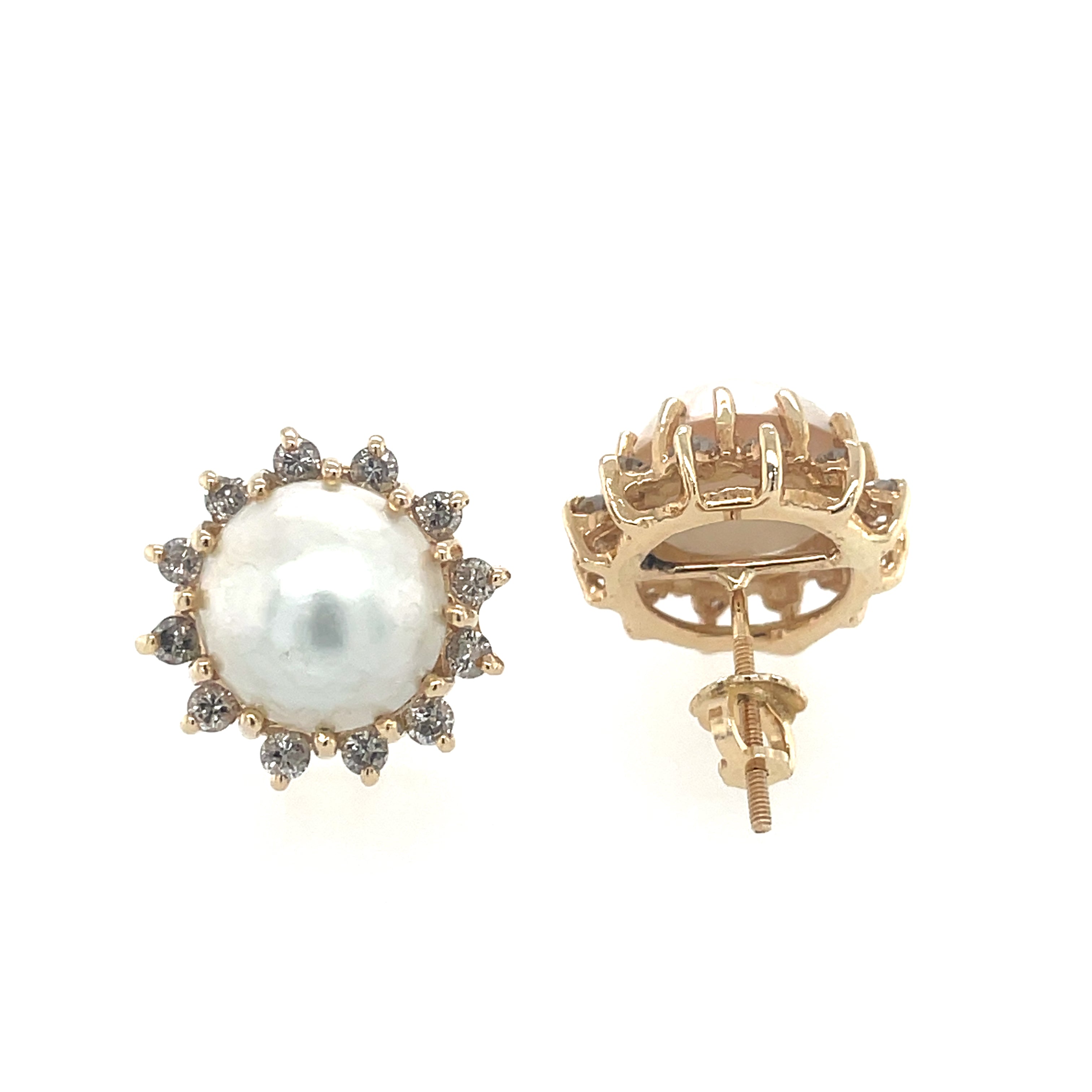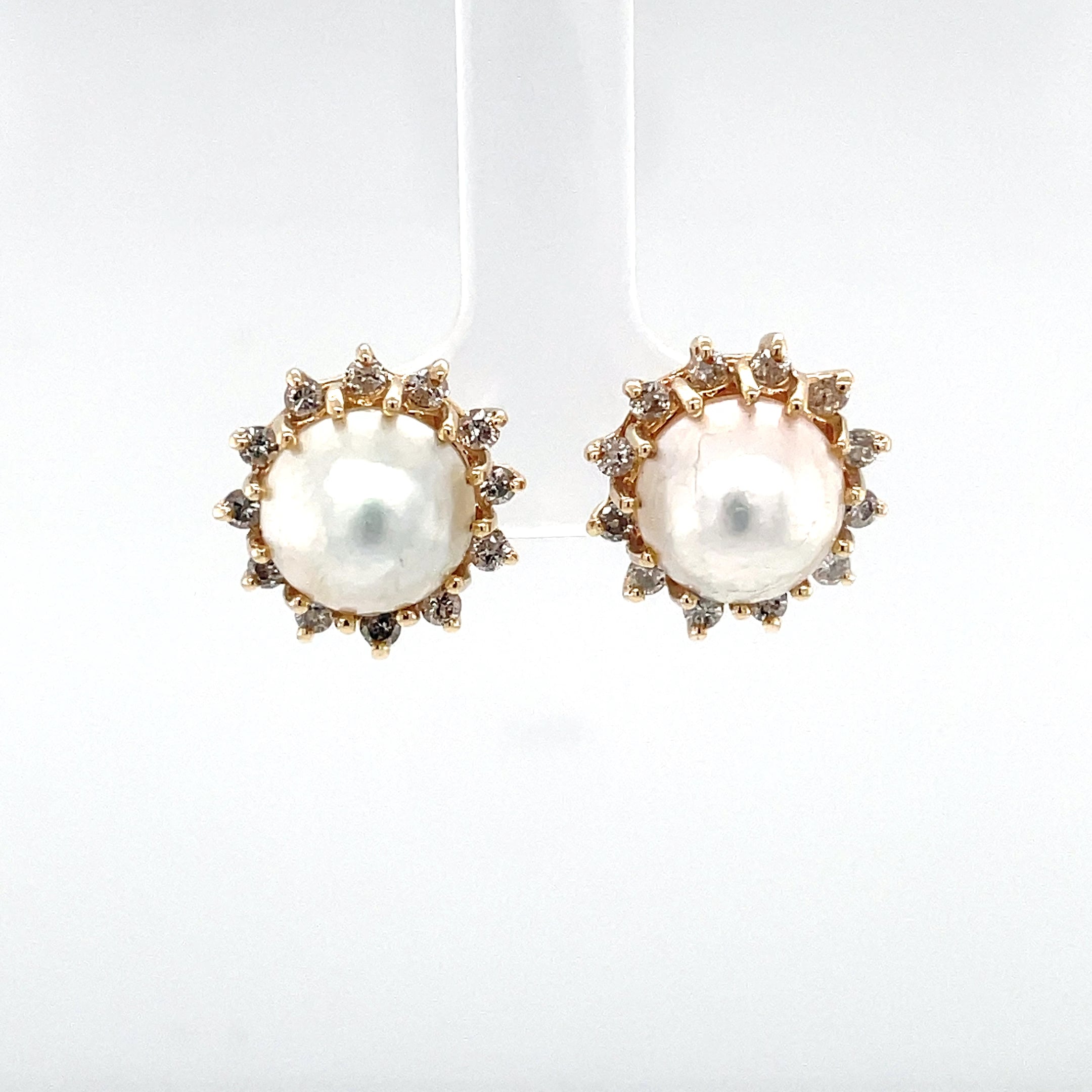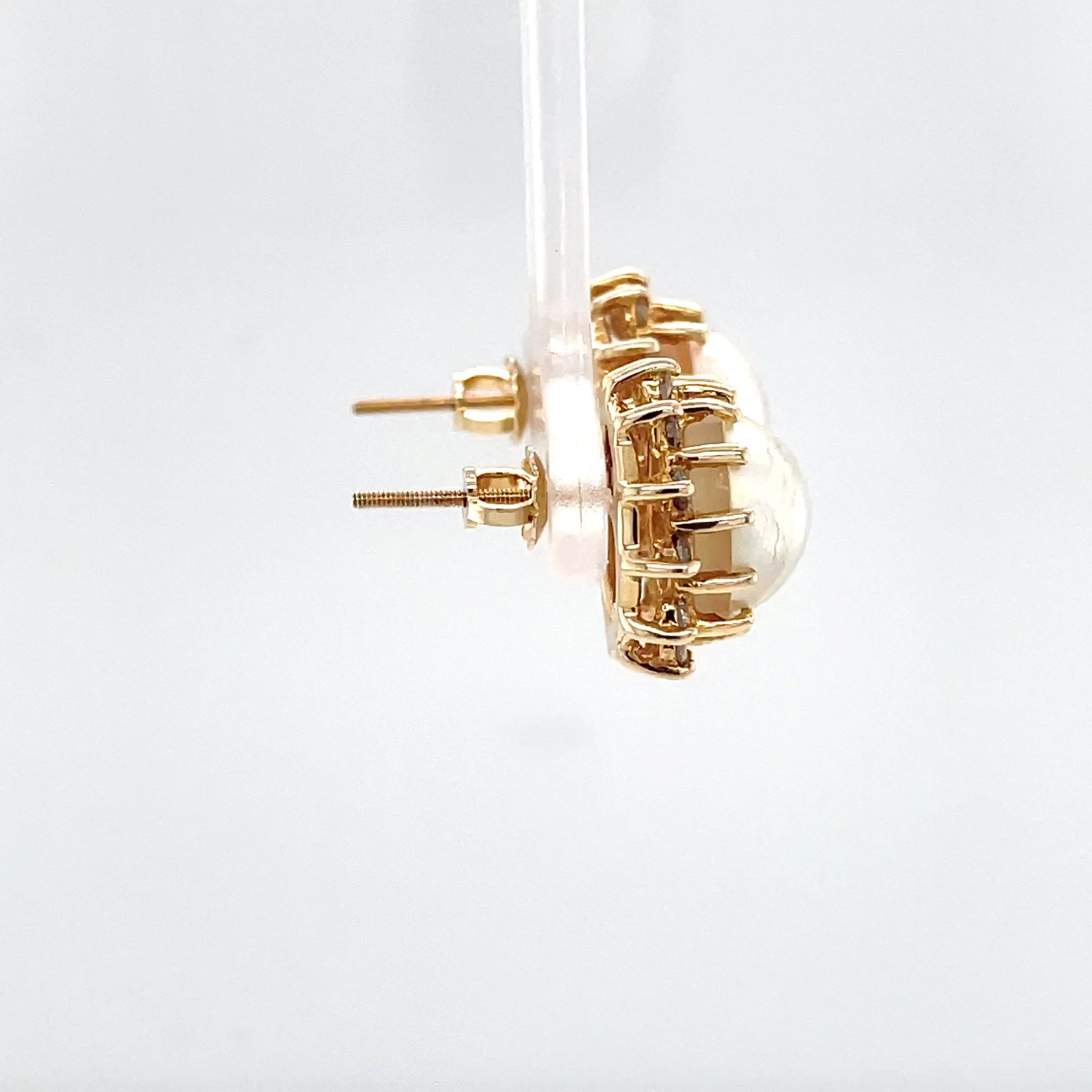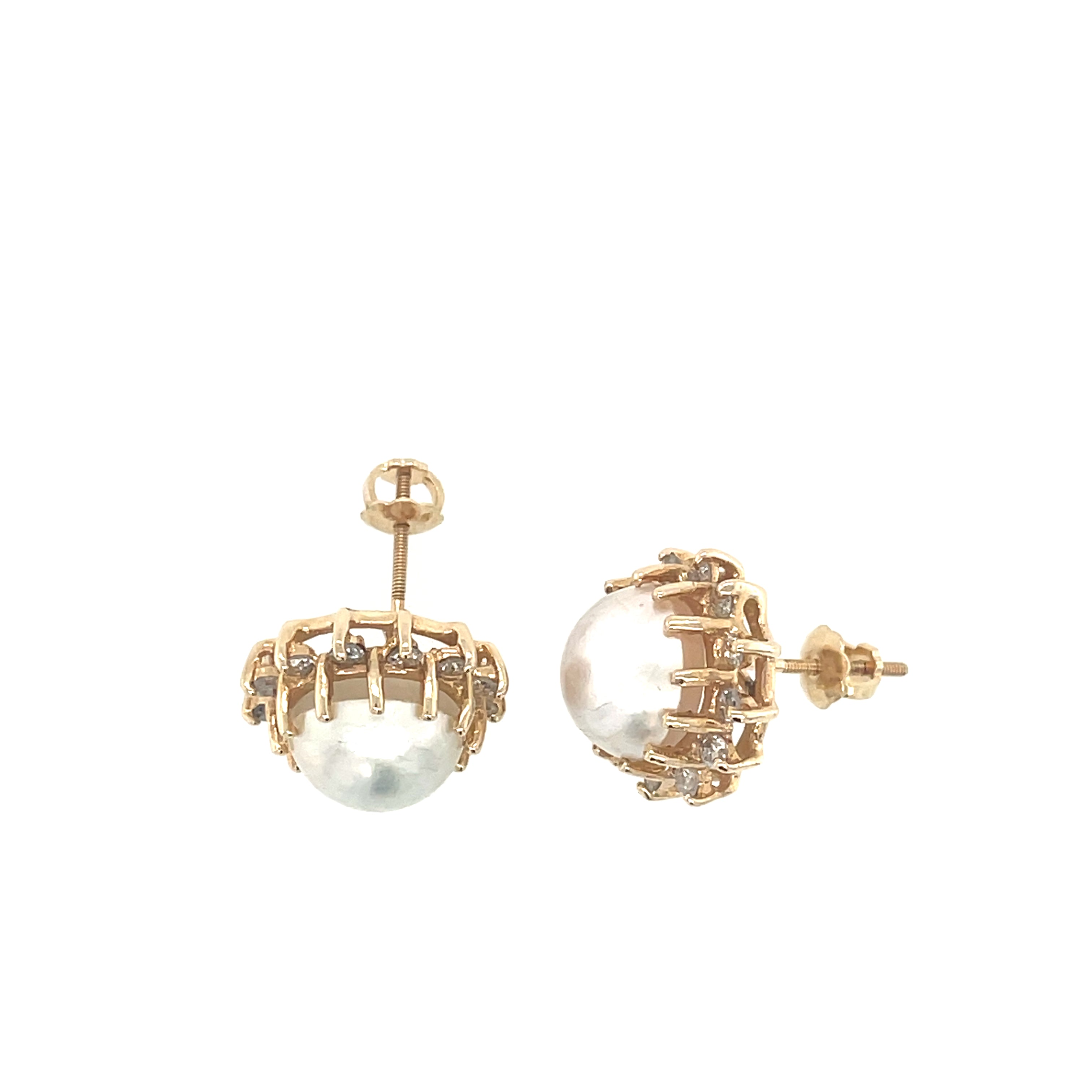 Add a touch of elegance to your outfit with these stunning 14K yellow gold earrings. The round natural pearls and 24 diamonds make these earrings a perfect accessory for any occasion. The screw back closure ensures a secure fit and the gold color adds a touch of luxury to your look. These earrings are a classic example of fine jewelry and are sure to become a favorite in your collection.