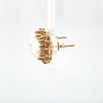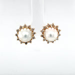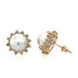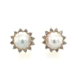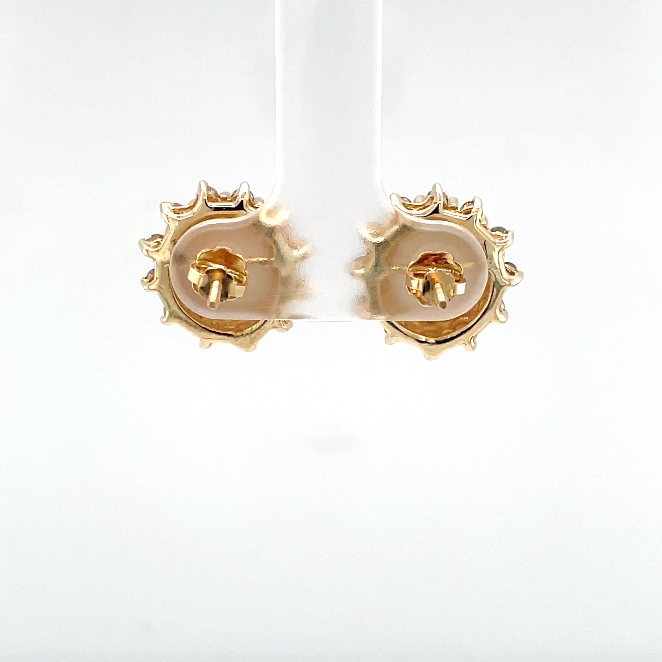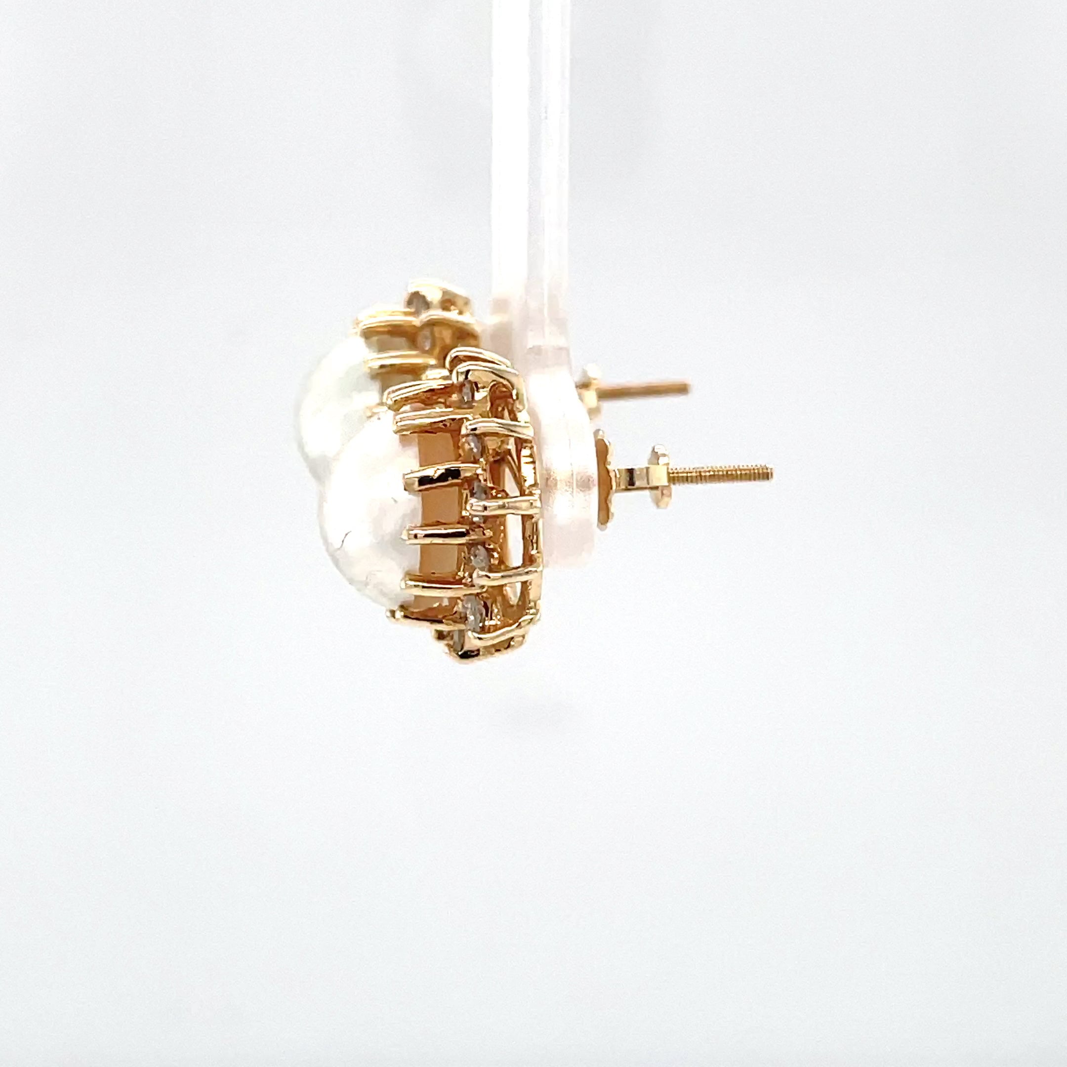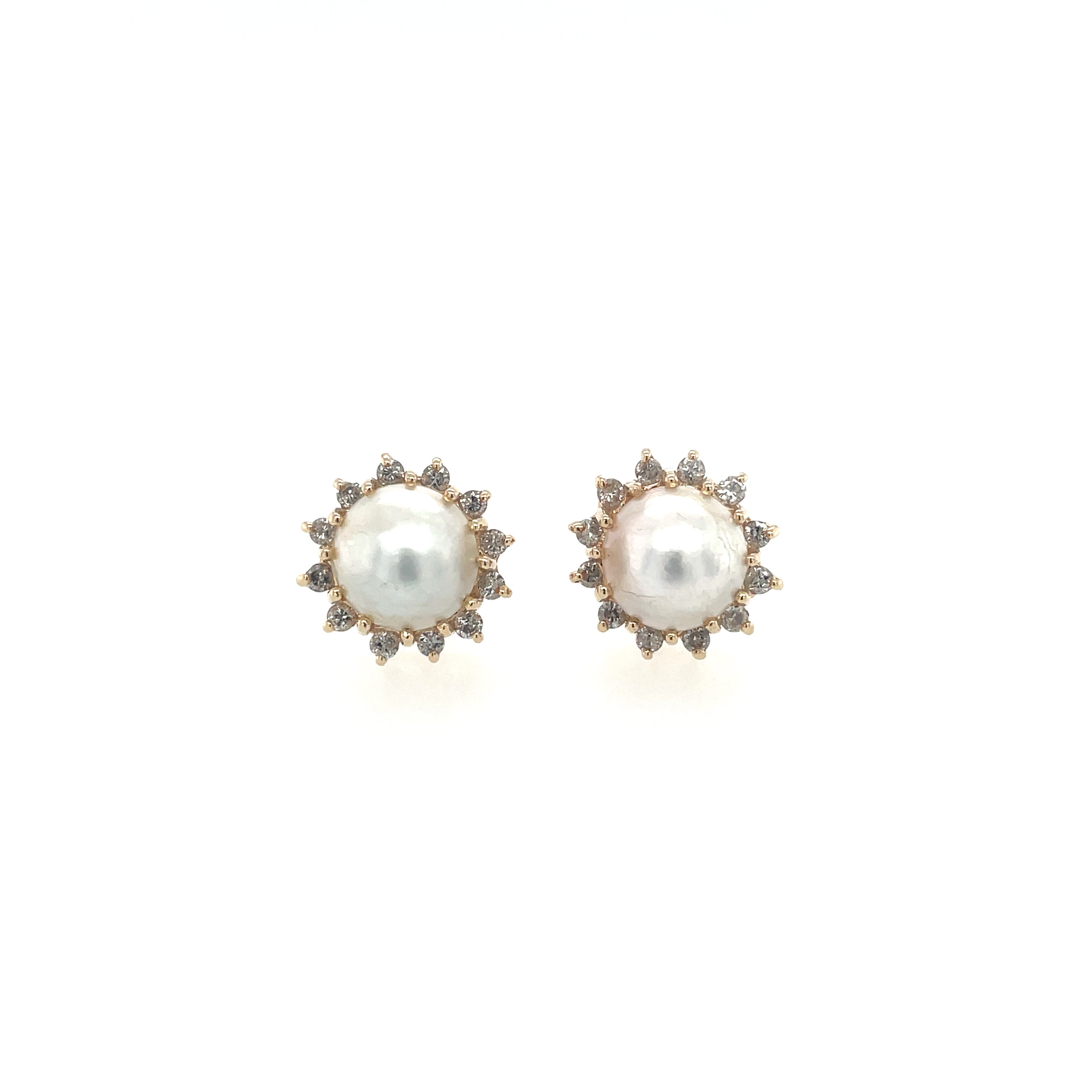 Add a touch of elegance to your outfit with these stunning 14K yellow gold earrings. The round natural pearls and 24 diamonds make these earrings a perfect accessory for any occasion. The screw back closure ensures a secure fit and the gold color adds a touch of luxury to your look. These earrings are a classic example of fine jewelry and are sure to become a favorite in your collection.