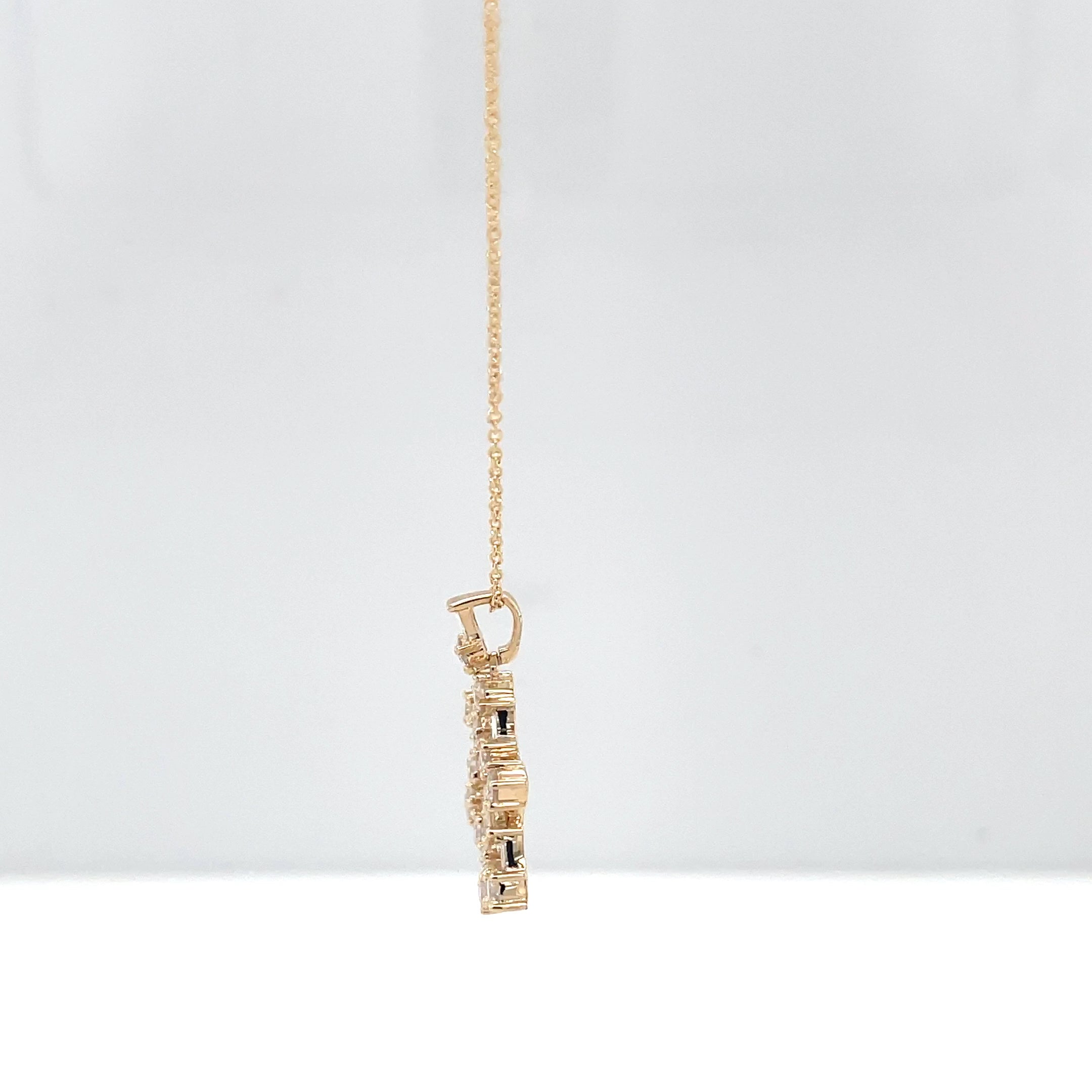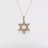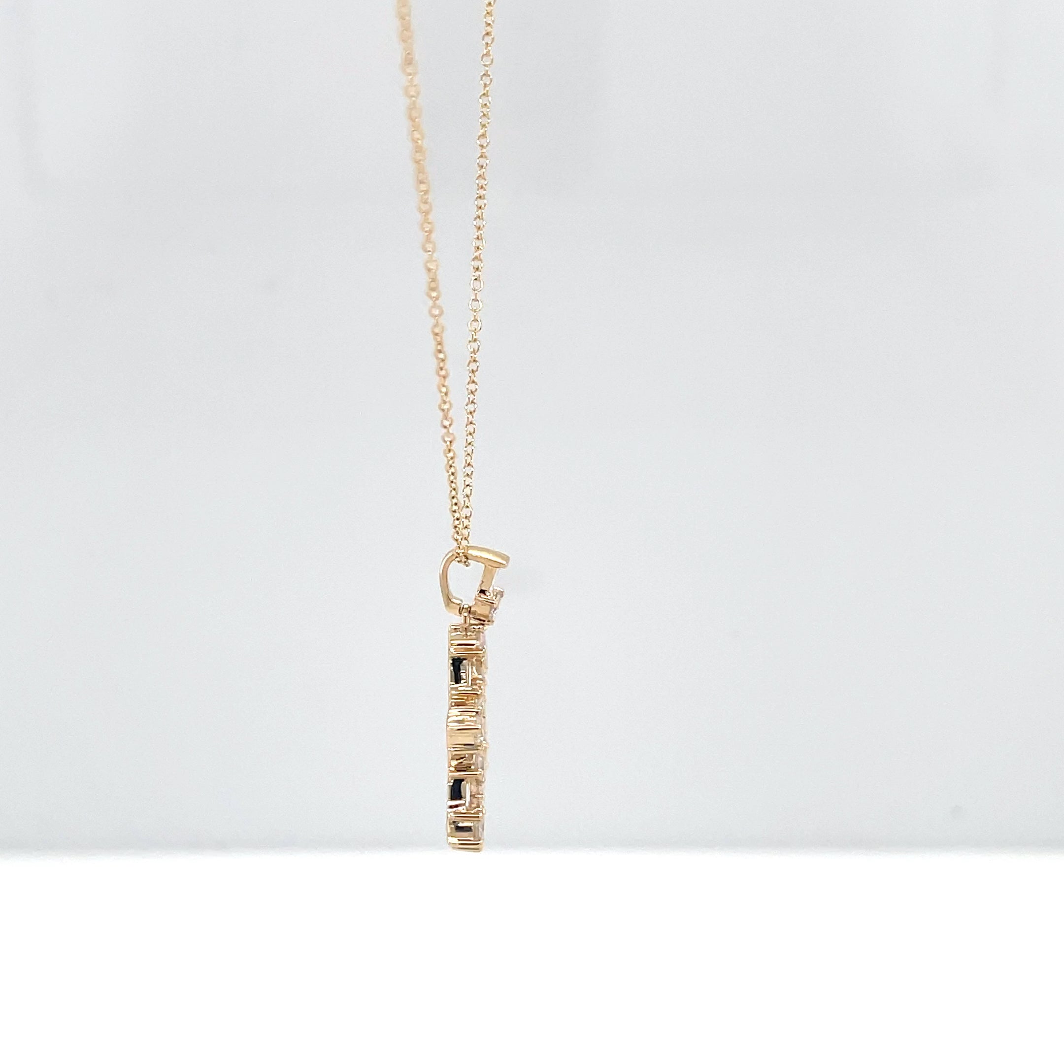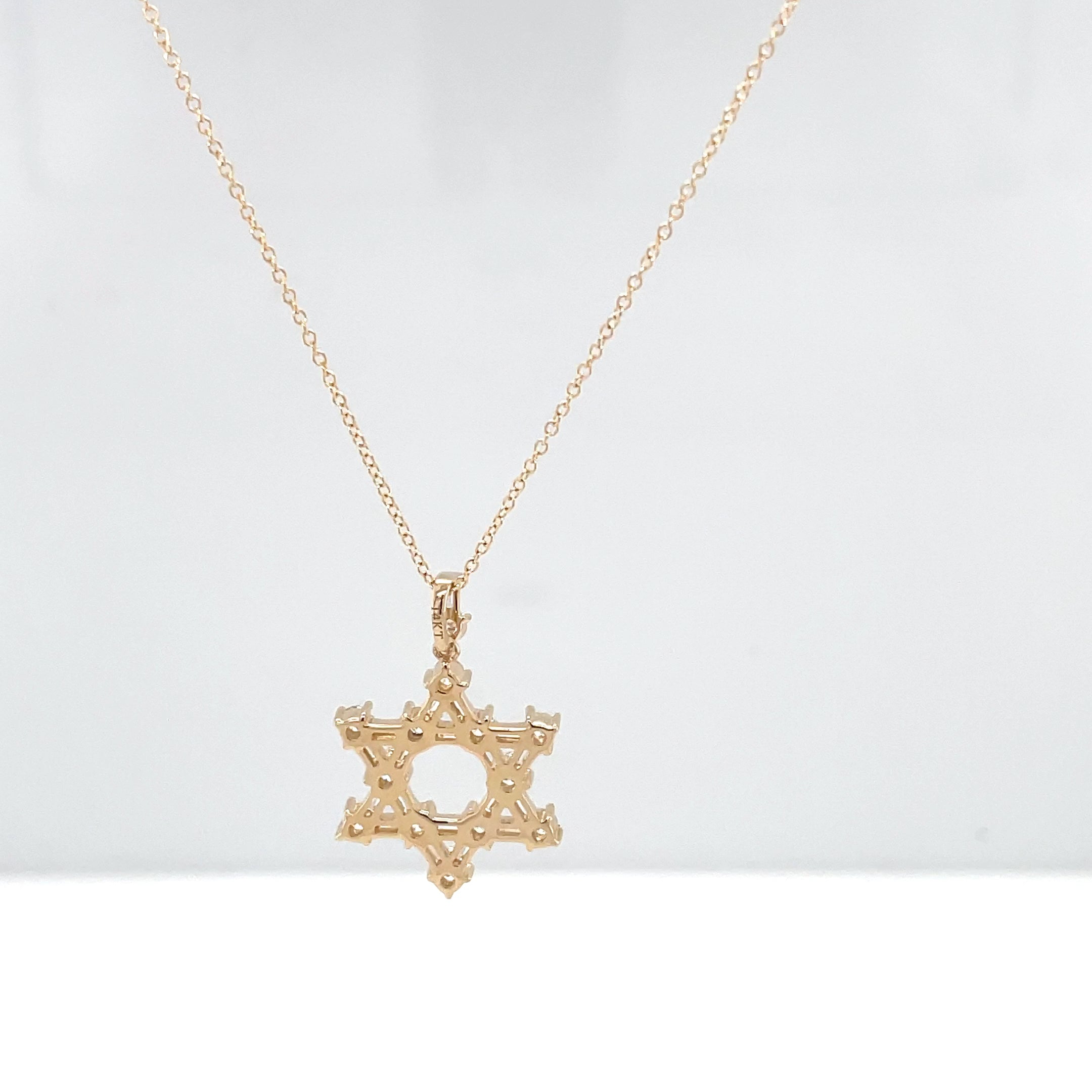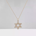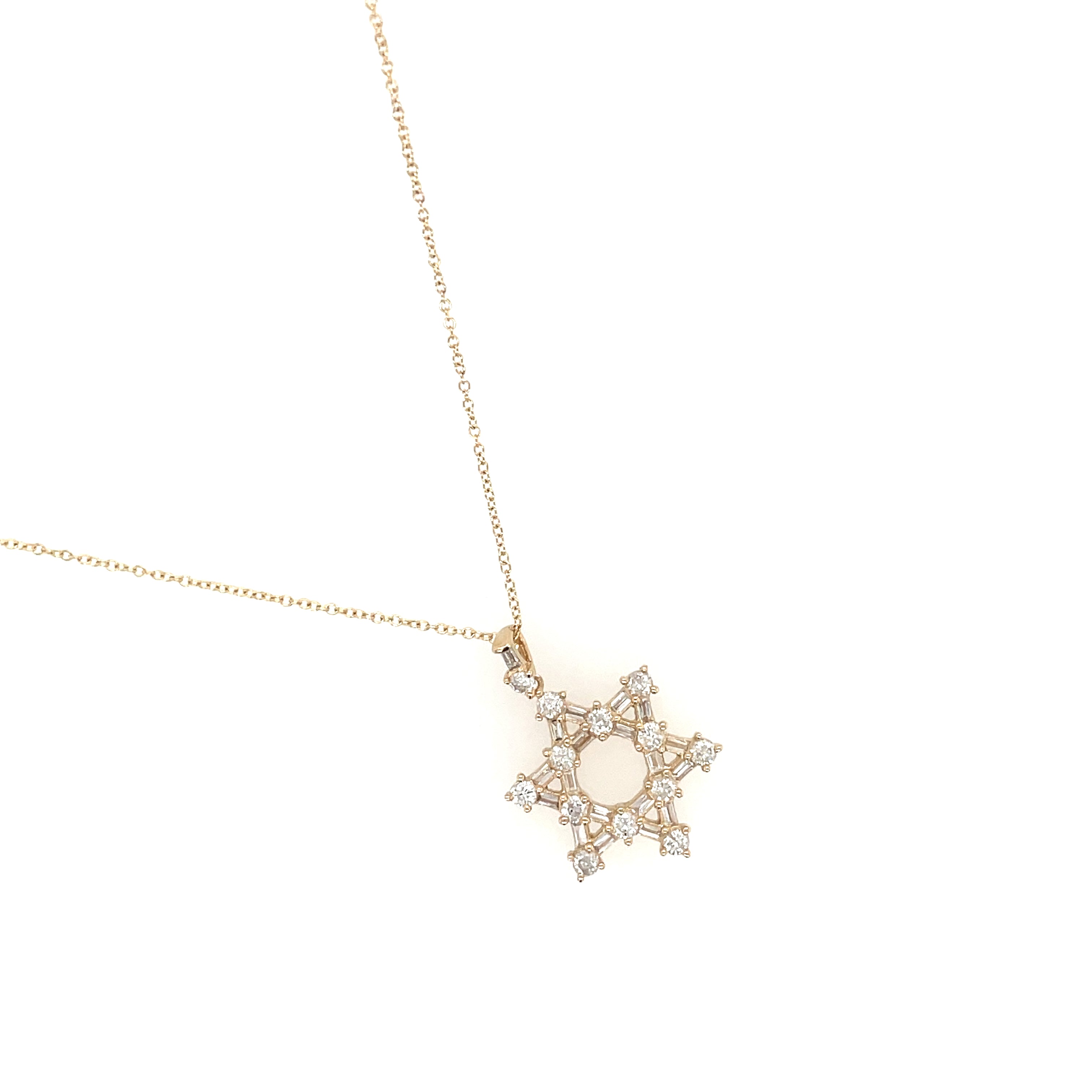 This stunning necklace features a beautiful star-shaped pendant made of 14K yellow gold, adorned with a sparkling baguette diamonds. The pendant hangs from a 16-inch cable chain that complements the gold tone of the pendant. The necklace has a religious theme and is made in the United States.