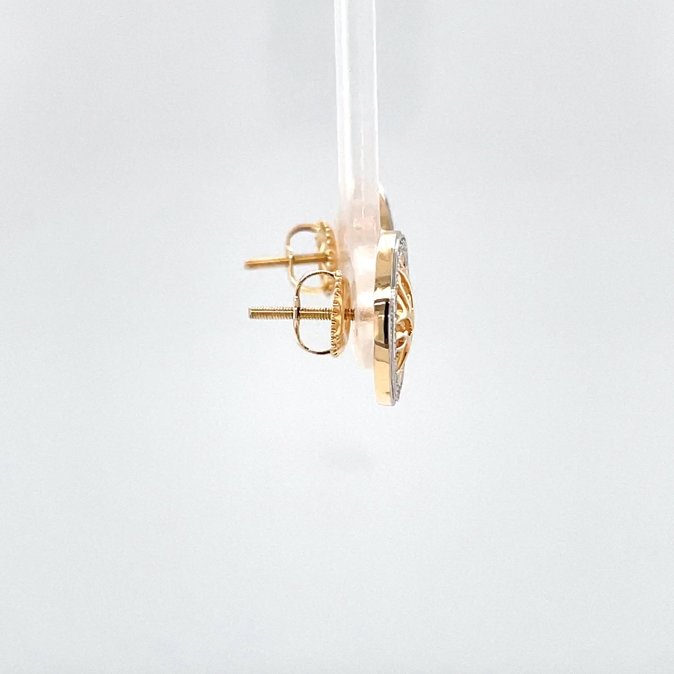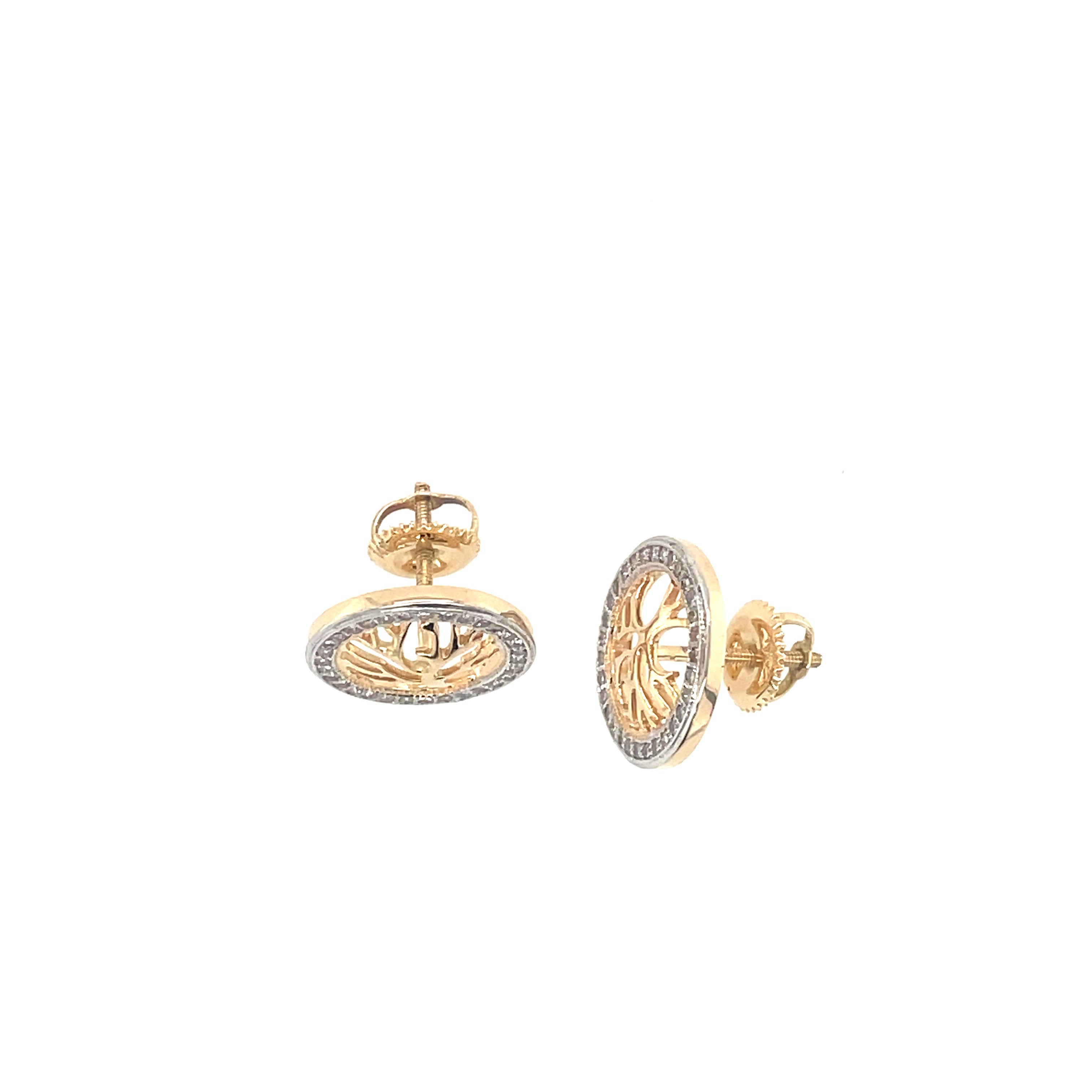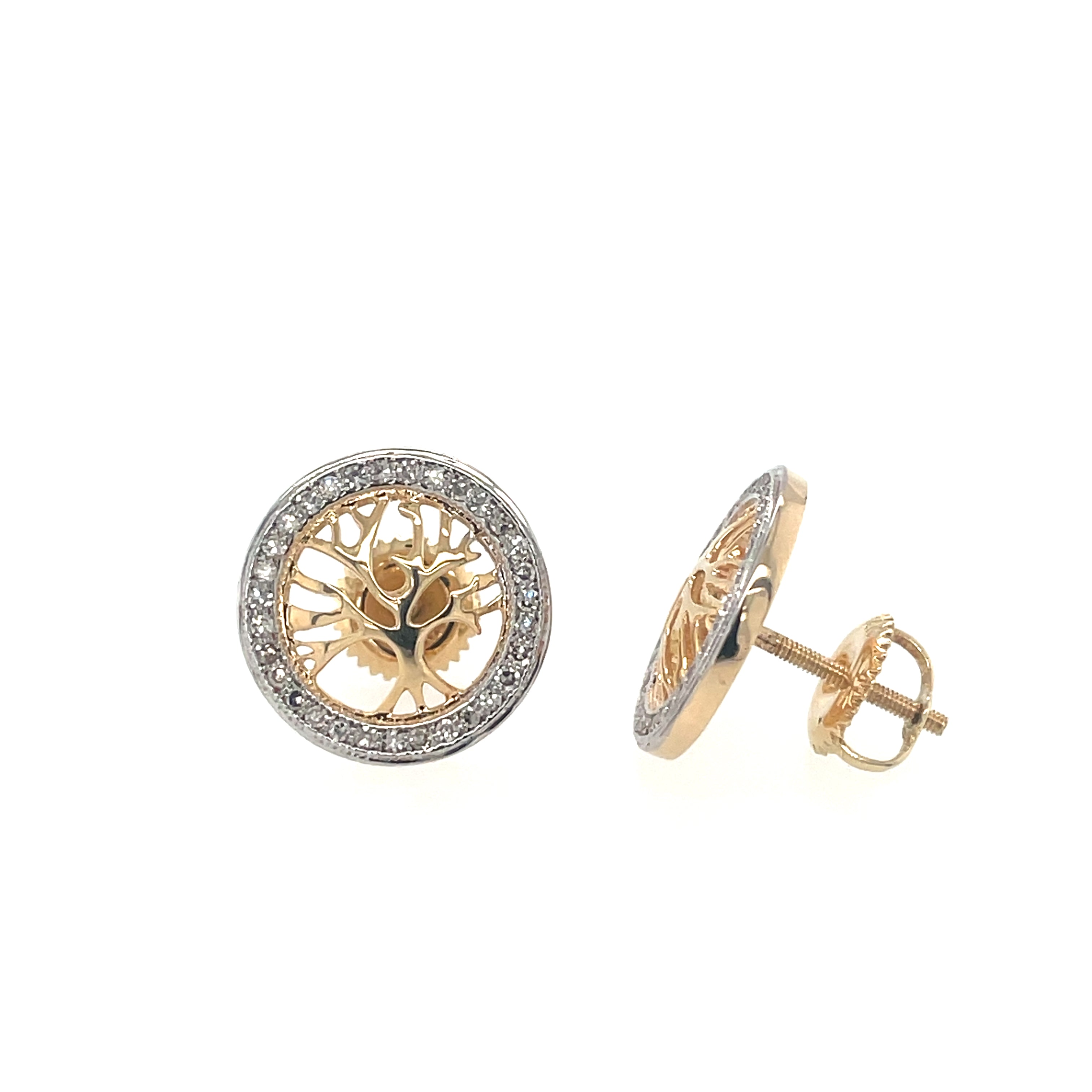 Add a touch of elegance to your outfit with these stunning 14K yellow gold Tree of Life Diamond Earrings. The round natural diamonds are set in a screw back closure, ensuring a secure and comfortable fit. The earrings feature a beautiful stud style, perfect for any occasion. The white/colorless diamonds are complemented by the gold metal, creating a timeless look.