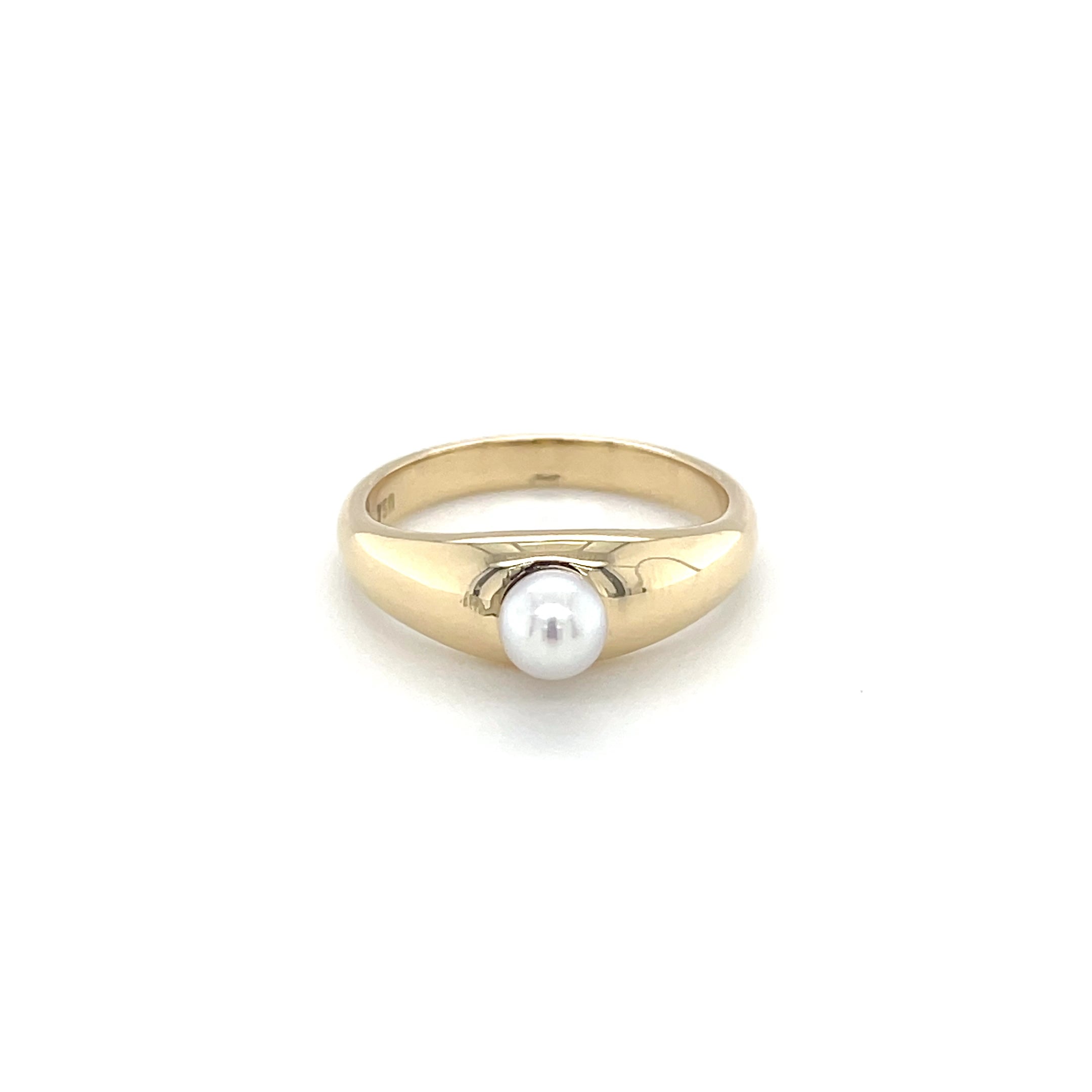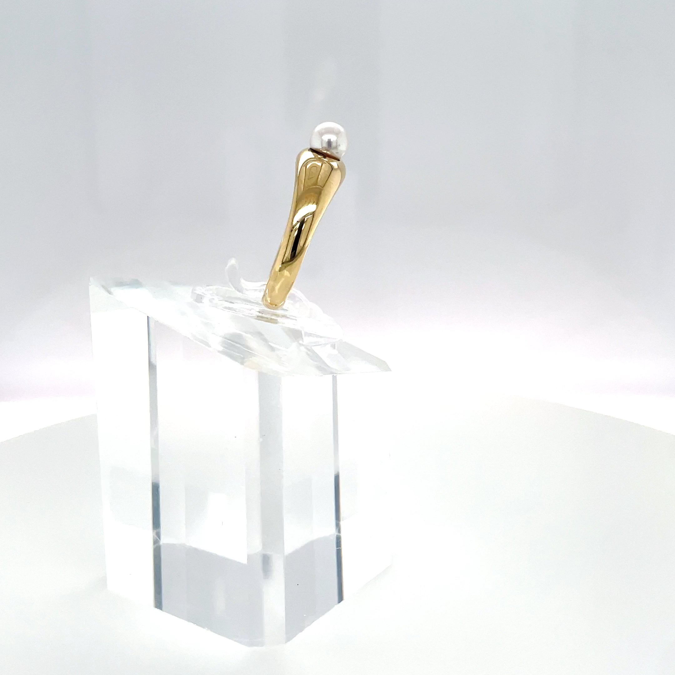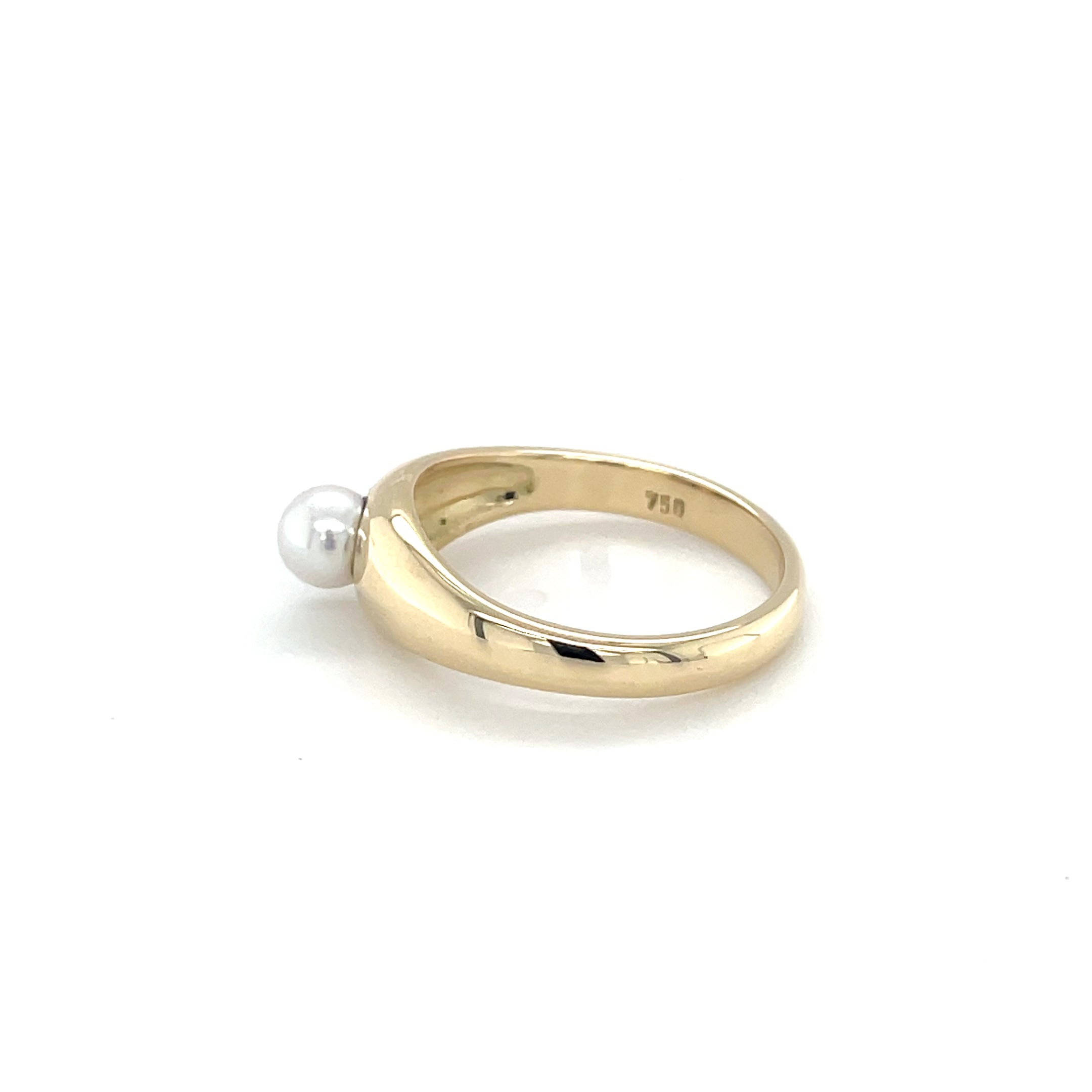 This stunning 18K yellow gold ring is a must-have for any jewelry collection. The ring features a natural round pearl in a classic design that is both timeless and elegant. The ring is size 6.5 and can be resized if needed. The ring is made of high-quality 18K yellow gold, which adds a touch of luxury to any outfit. The ring is perfect for any occasion, from a night out on the town to a special event. Add this beautiful piece to your collection today!