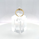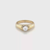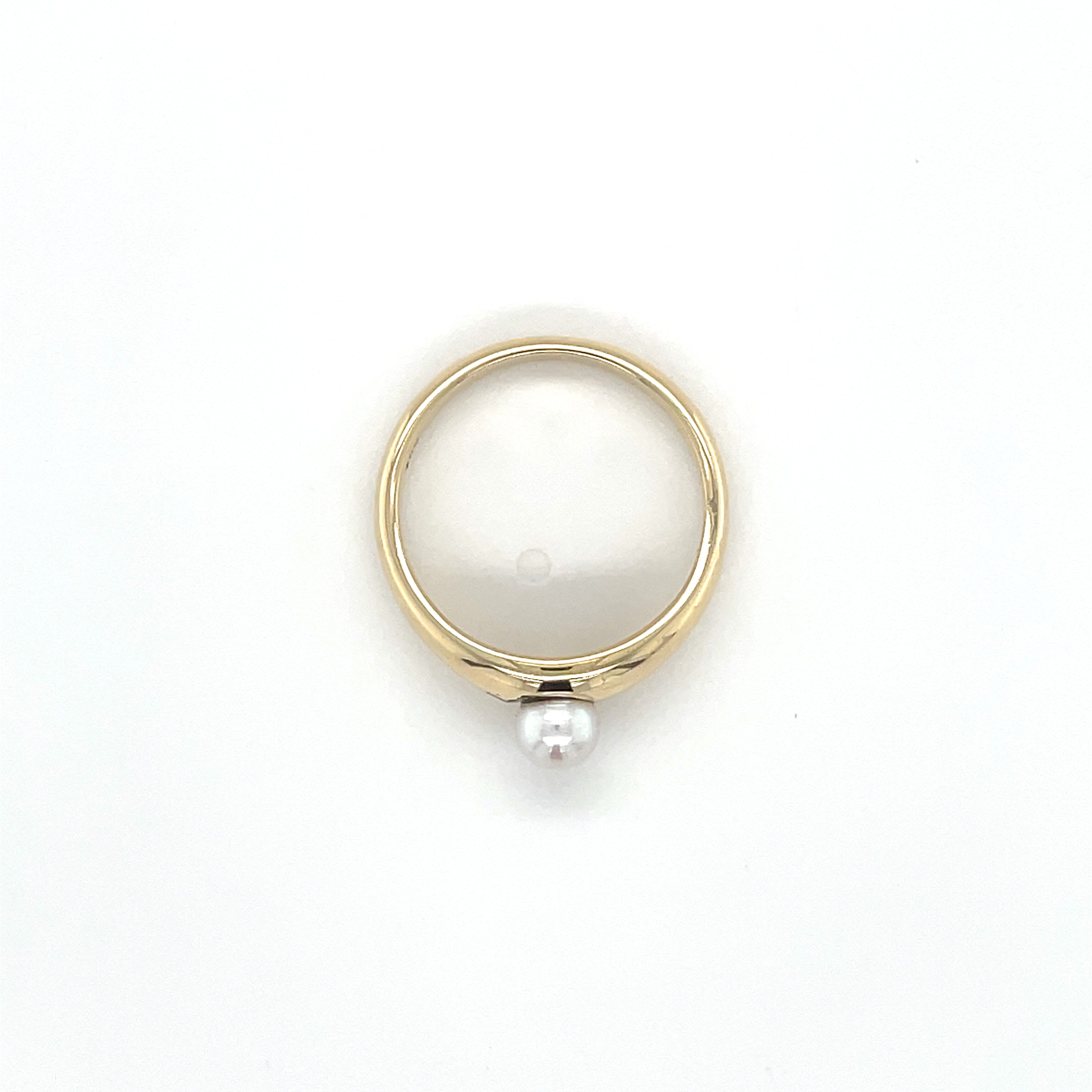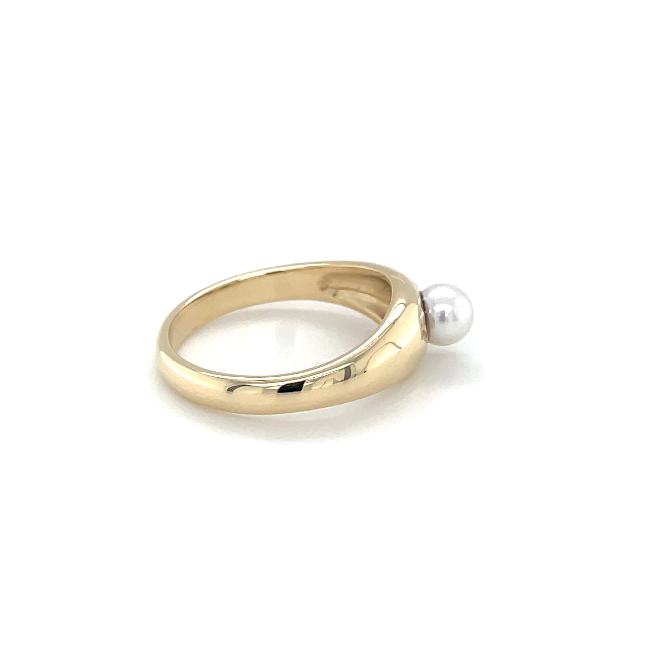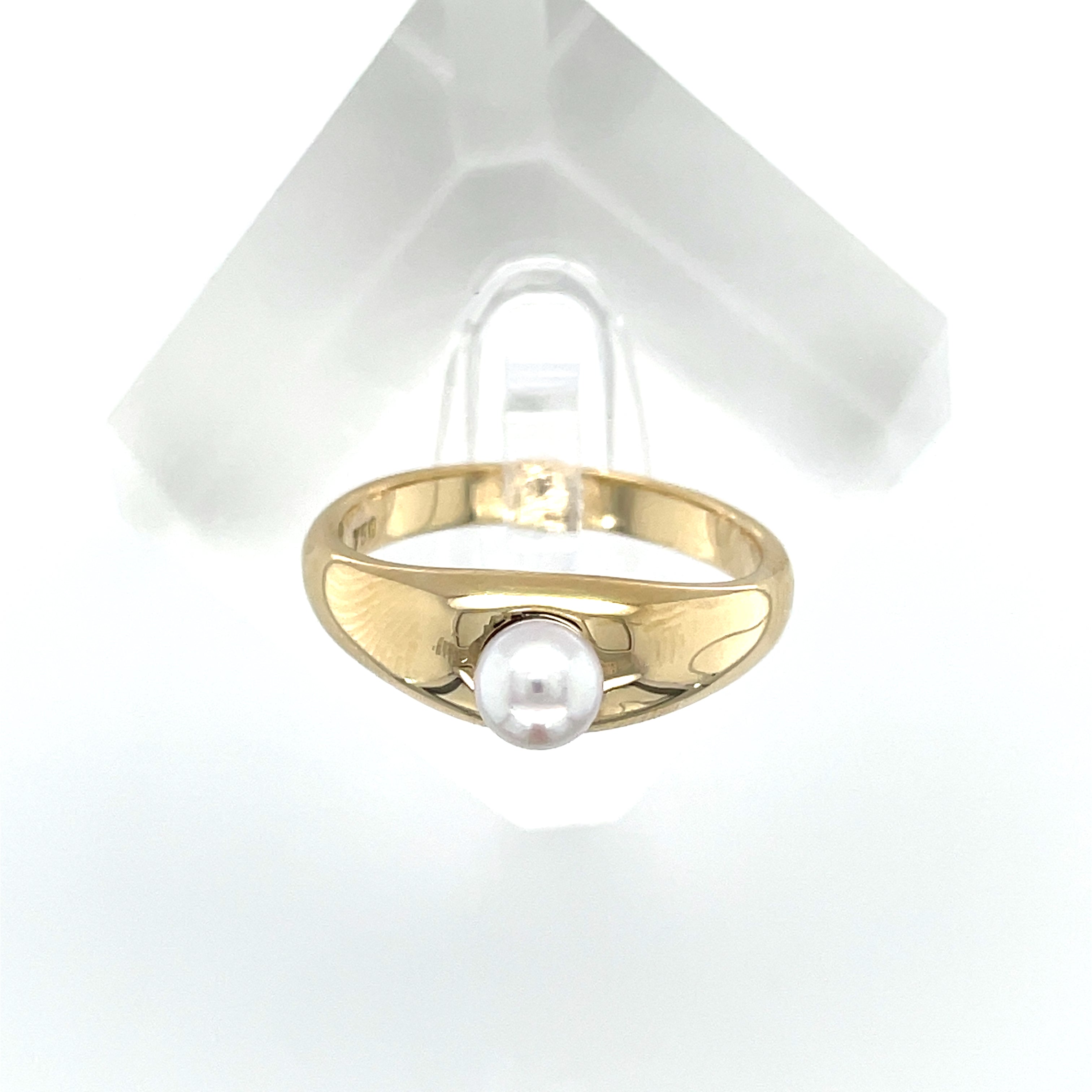 This stunning 18K yellow gold ring is a must-have for any jewelry collection. The ring features a natural round pearl in a classic design that is both timeless and elegant. The ring is size 6.5 and can be resized if needed. The ring is made of high-quality 18K yellow gold, which adds a touch of luxury to any outfit. The ring is perfect for any occasion, from a night out on the town to a special event. Add this beautiful piece to your collection today!